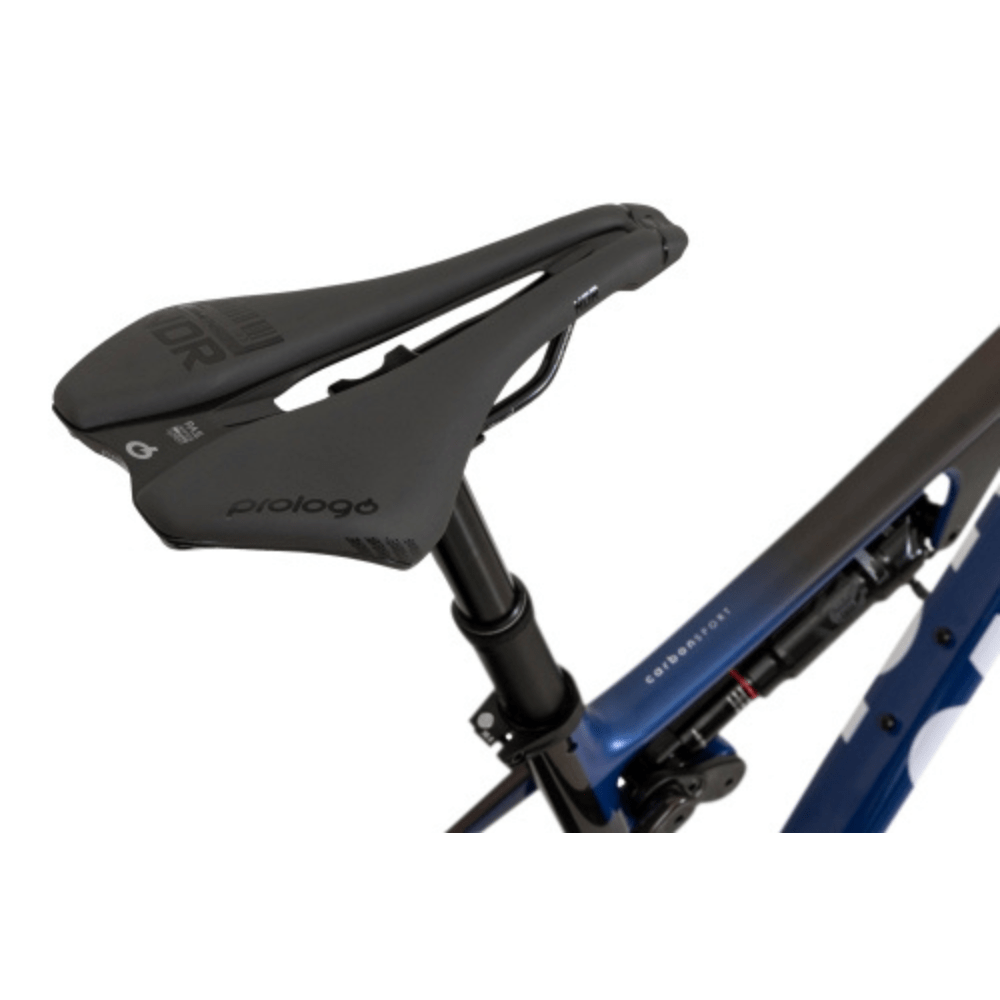 - Quadro em carbono com dupla suspensão, garantindo estabilidade, leveza e absorção superior de impactos.